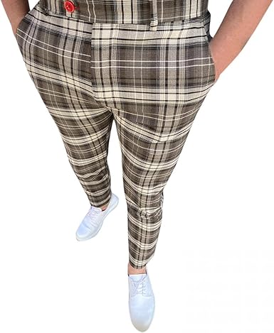 Akimpe Men S Casual Plaid Print Skinny Pencil Pants Zipper Elastic Waist Pants Casual Slim Business Work Office Trousers At Amazon Men S Clothing Store
